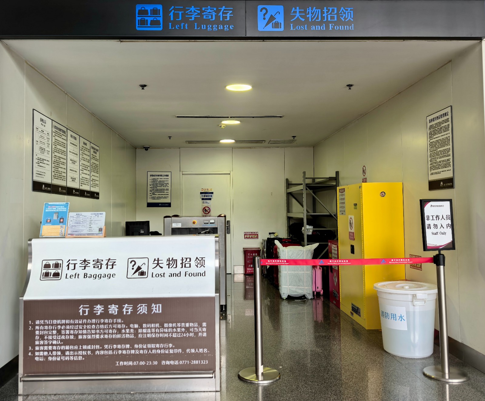 【失物招领地址】南宁机场T2航站楼一楼到达大厅失物招领处。咨询电话:0771-2881323。